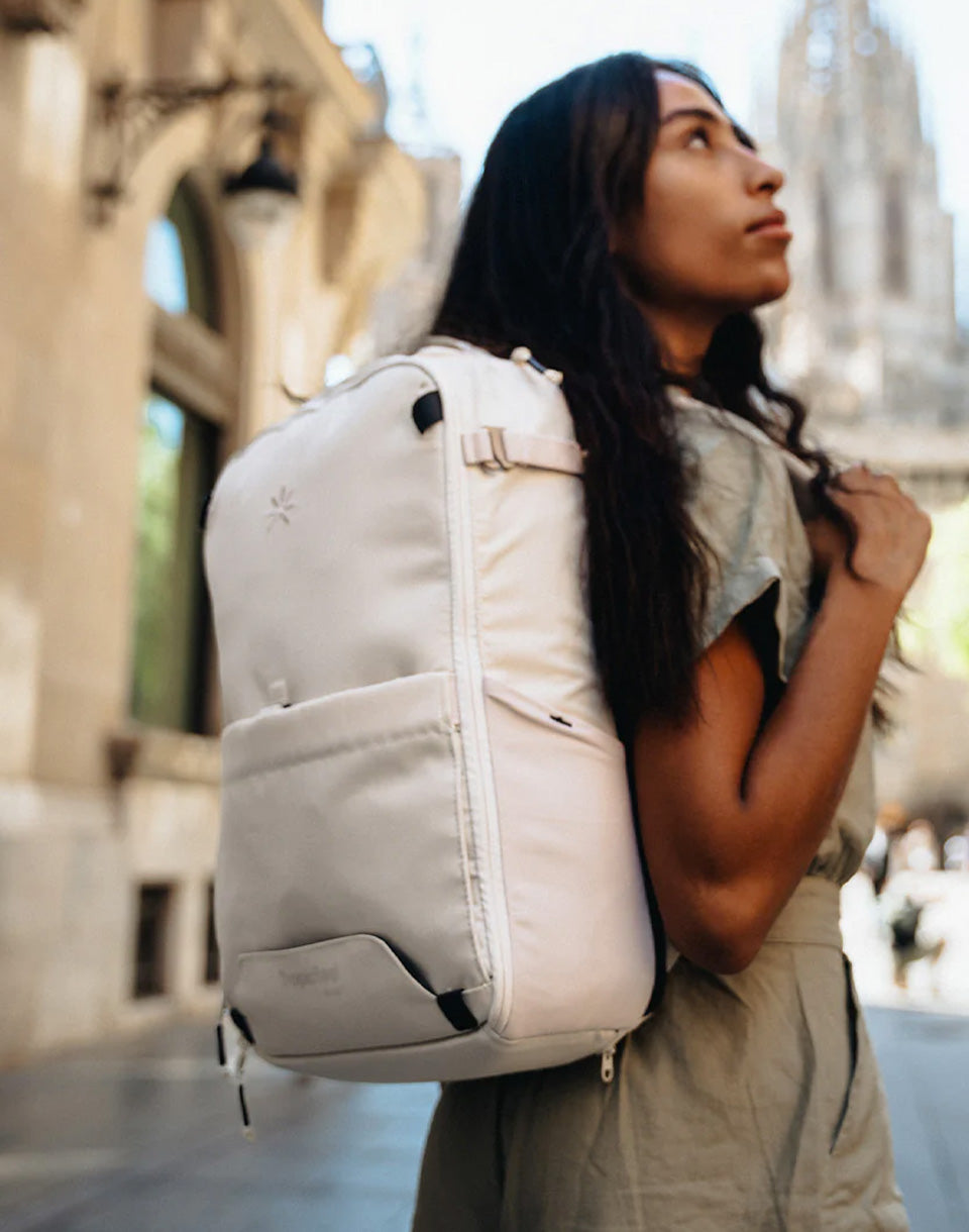 Sac à dos Tropicfeel Nest : un sac à dos urbain innovant, modulable et polyvalent, fabriqué à partir de matériaux recyclés, extensible de 4 litres supplémentaires grâce à une poche inférieure astucieuse. De plus, sa taille et son design sont parfaits pour voyager léger en avion.