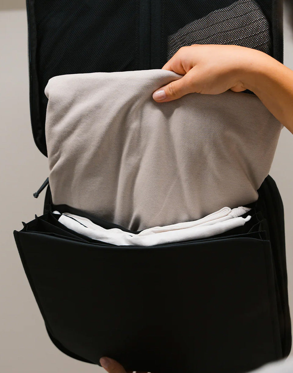 - Volume compressible avec fermeture éclair sur tout le périmètre