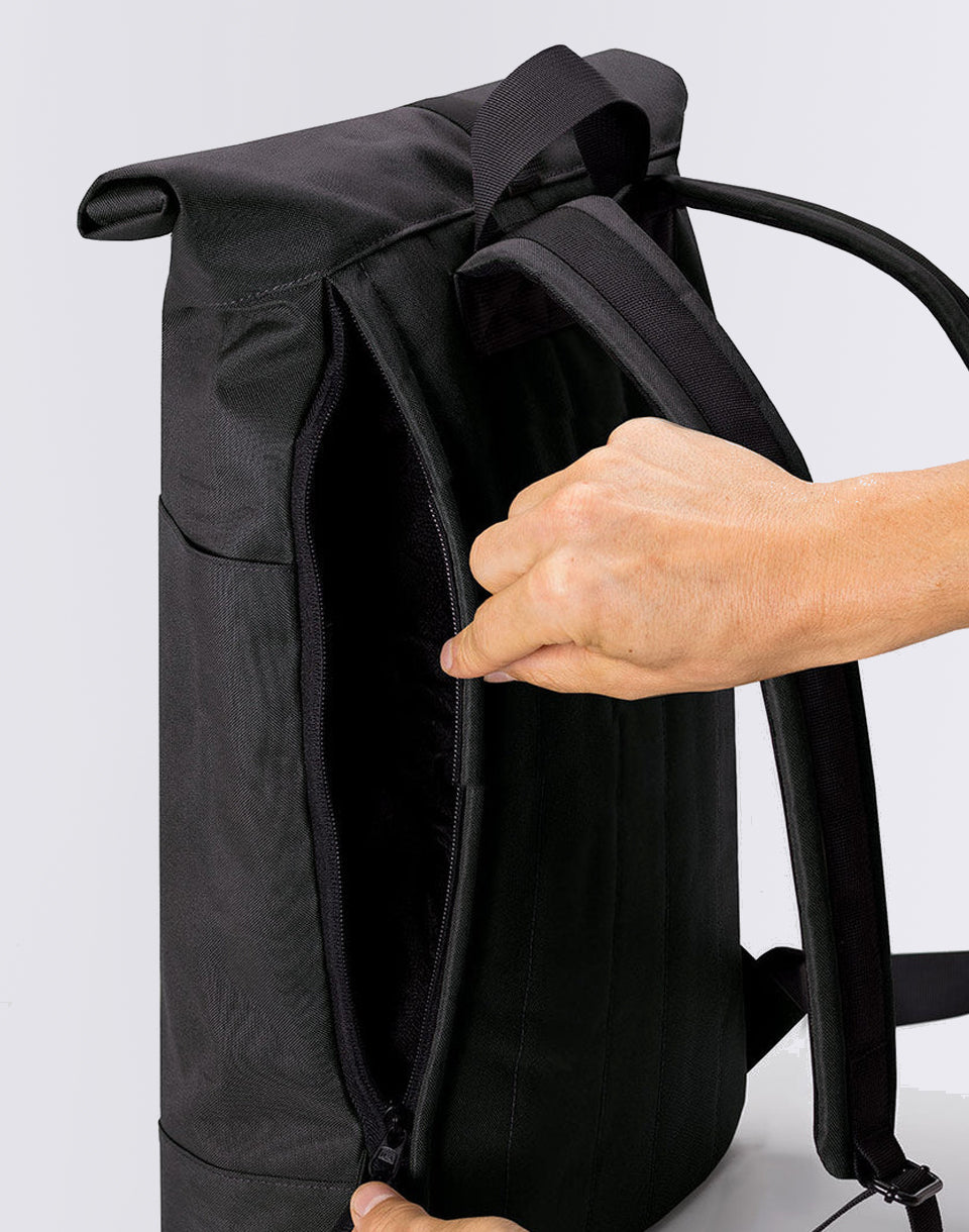 UCON Acrobatics Hajo Medium-Futuristic Roll-Top Backpack Dans un design minimal de la série furtive. Avec une poche d'ordinateur portable et en arrière rembourré avec des sangles, il convient non seulement à l'école, mais aussi au travail et à toutes les autres aventures urbaines.