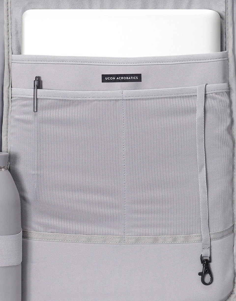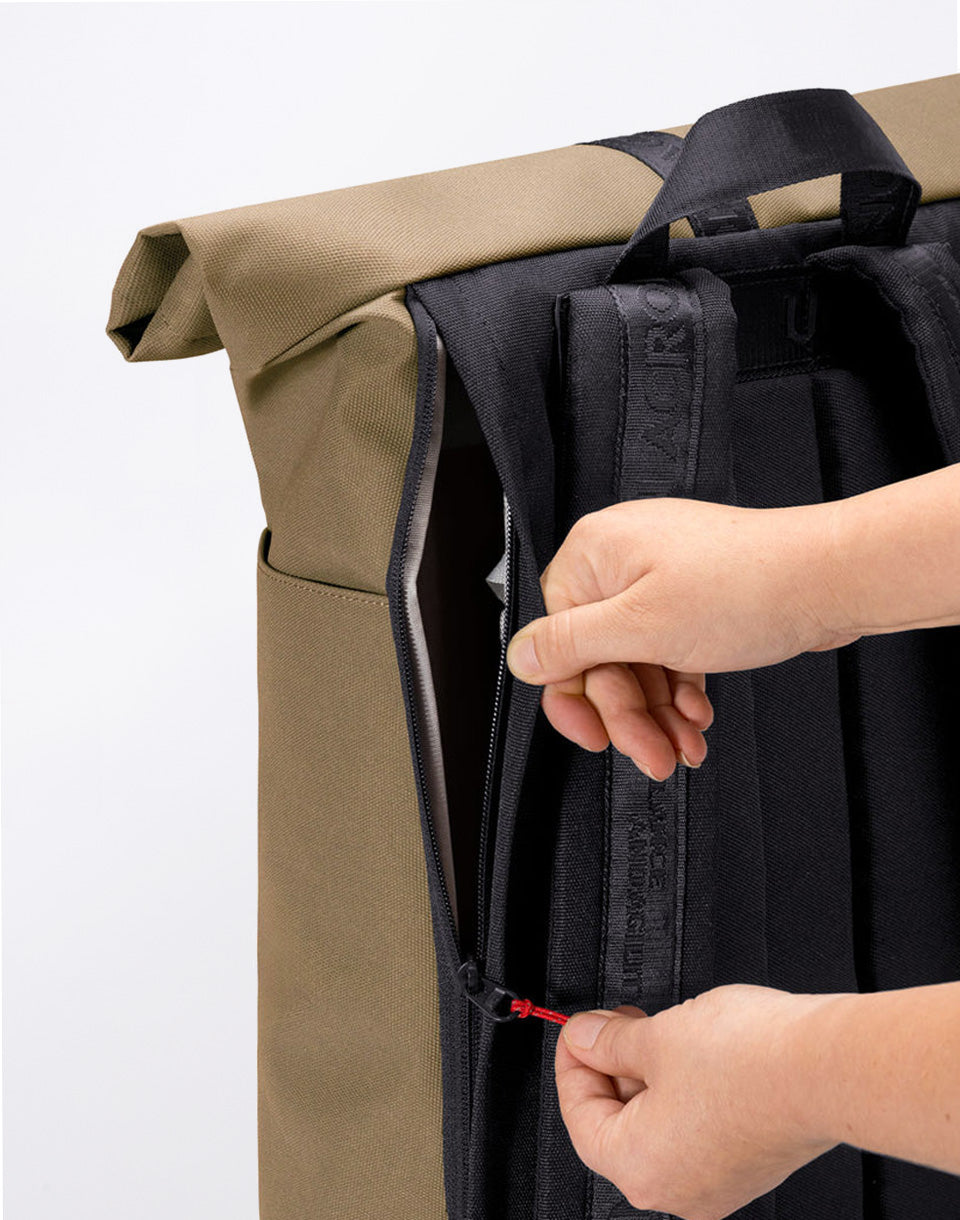 Ucon Acrobatics Hajo Mini – un petit sac à dos roll-top minimaliste de la collection unique Phantom, fabriqué à partir de bouteilles en PET recyclées et du matériau innovant ECO-RFLX-900, hautement réfléchissant grâce à la présence de microparticules de verre dans le tissu. Il offre aux cyclistes et aux piétons une sécurité accrue dans la circulation nocturne en ville.
