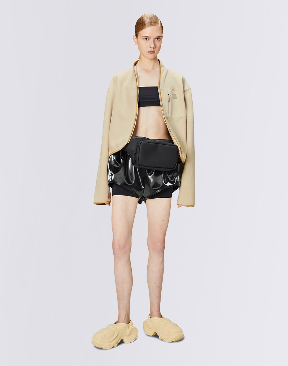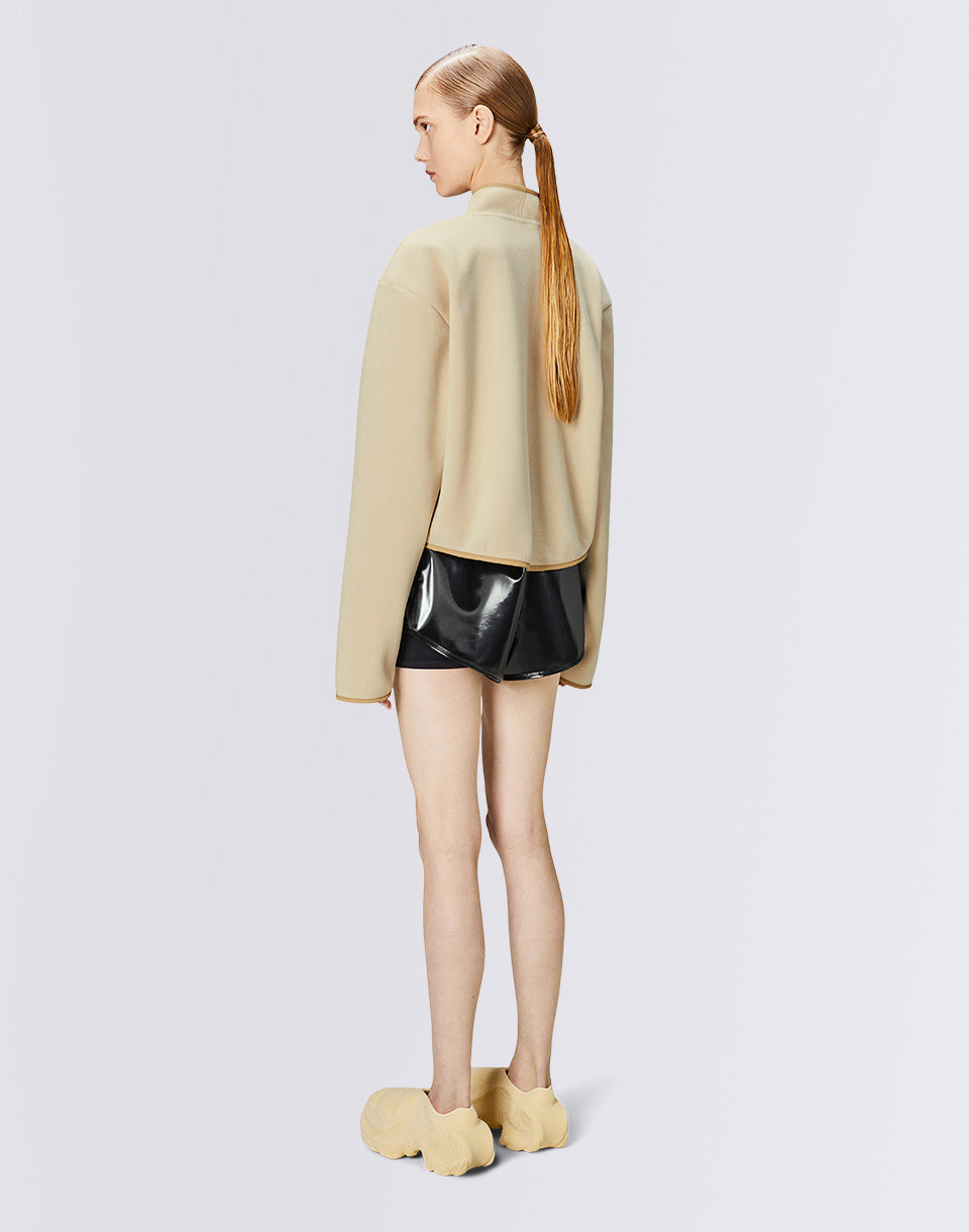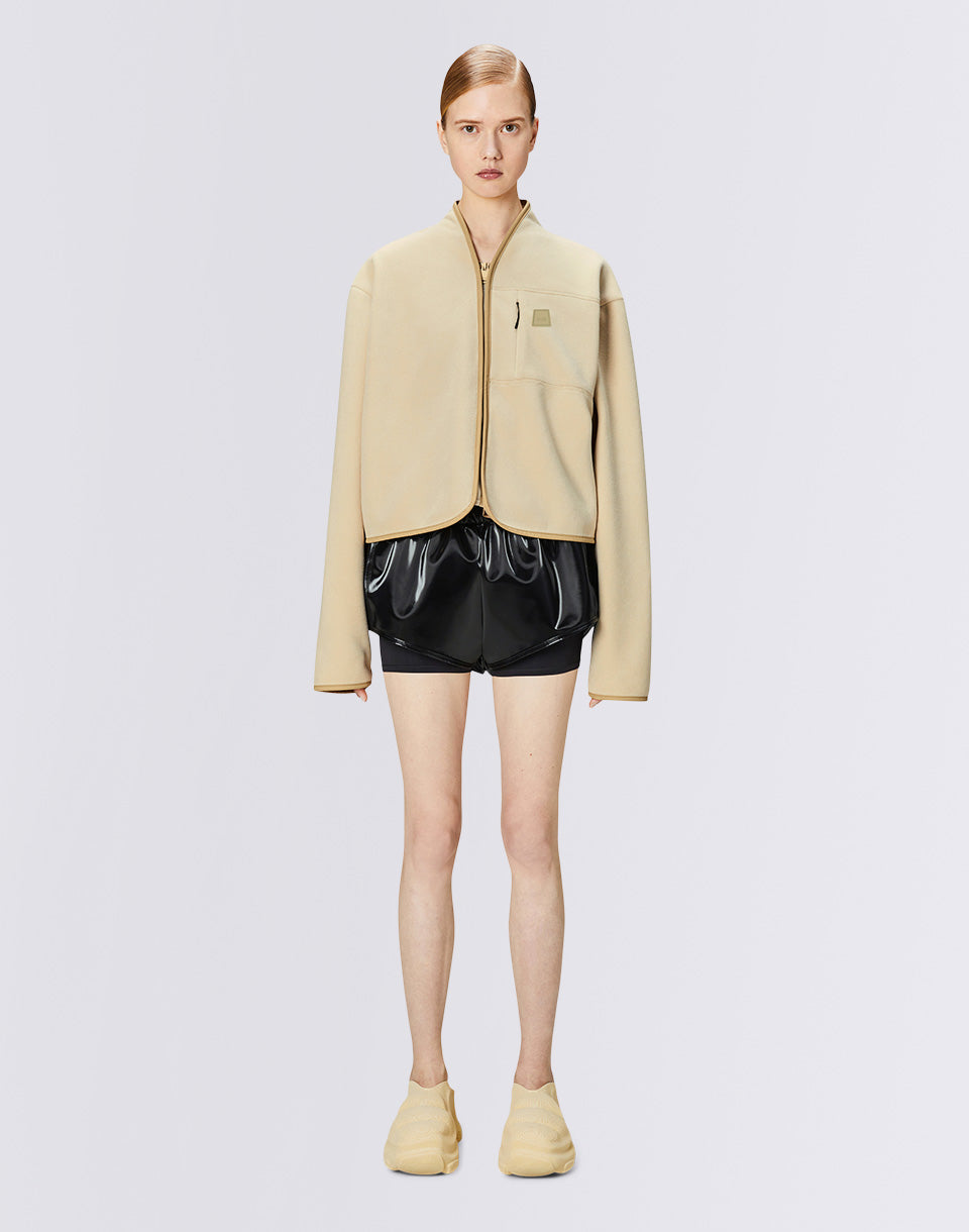 La veste en toison courte des pluies Durban - une veste en toison courte avec une garniture du tissu PU emblématique qui est la pièce parfaite pour la superposition pendant les mois de transition.